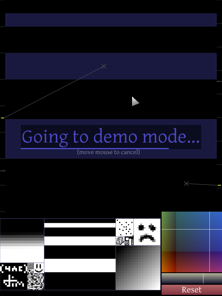 Before going into demo mode, the program displays a warning so a user -- who is perhaps simply enjoying the current composition -- can wiggle the mouse and cancel.