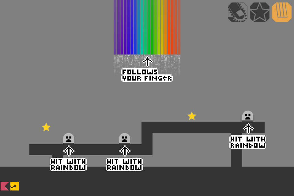 Rainbow is a game about driving rainbows through the sky using your fingers. This simple mechanic feels good on the fingers and provides enough challenge and variety to tickle the brain.