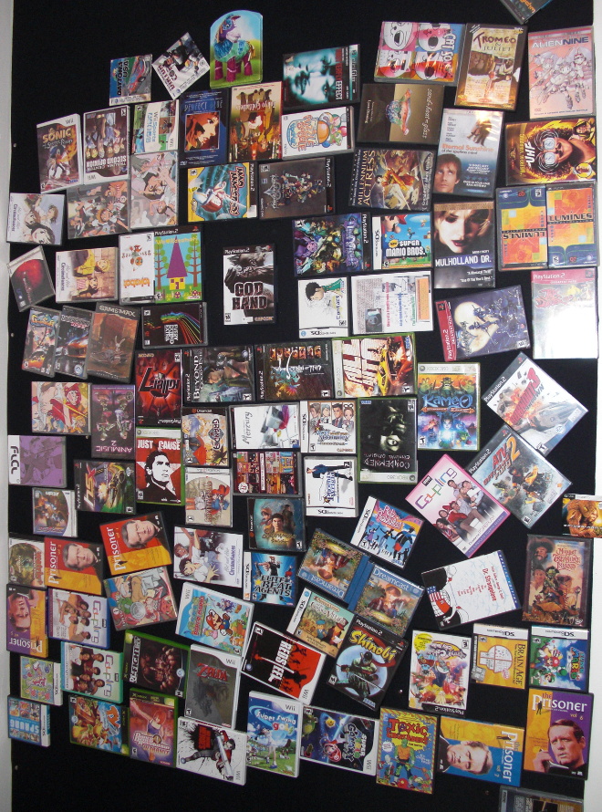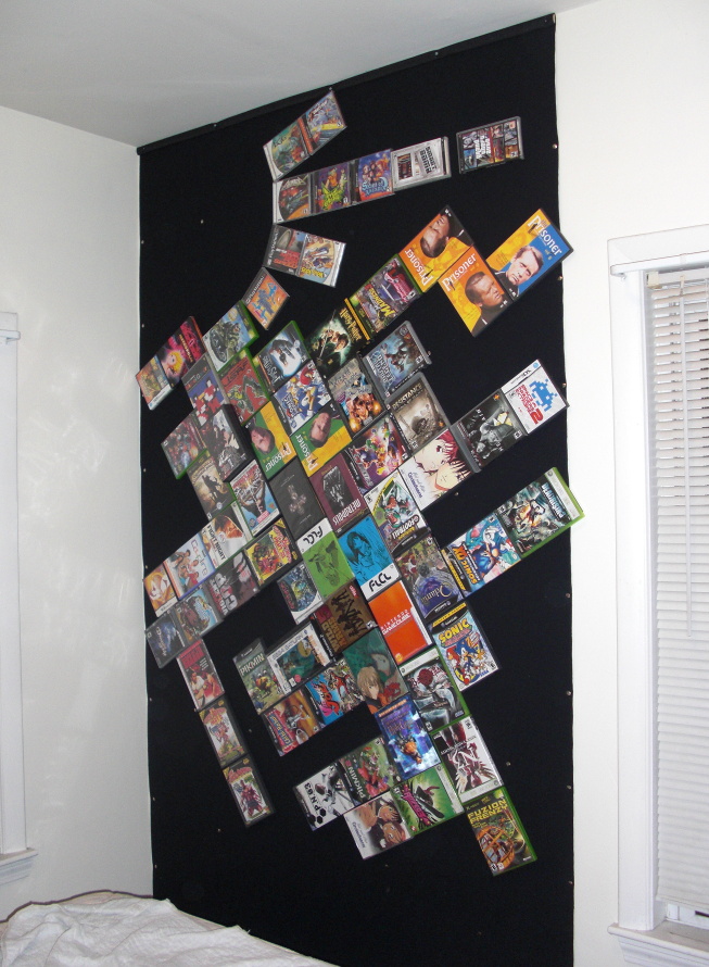 I like that this arrangement lets me get some aesthetic enjoyment out of the games; actually, that's pretty much all I get out of them -- most of these games went up on the wall when I moved in and are coming down as I move out, having never been played.